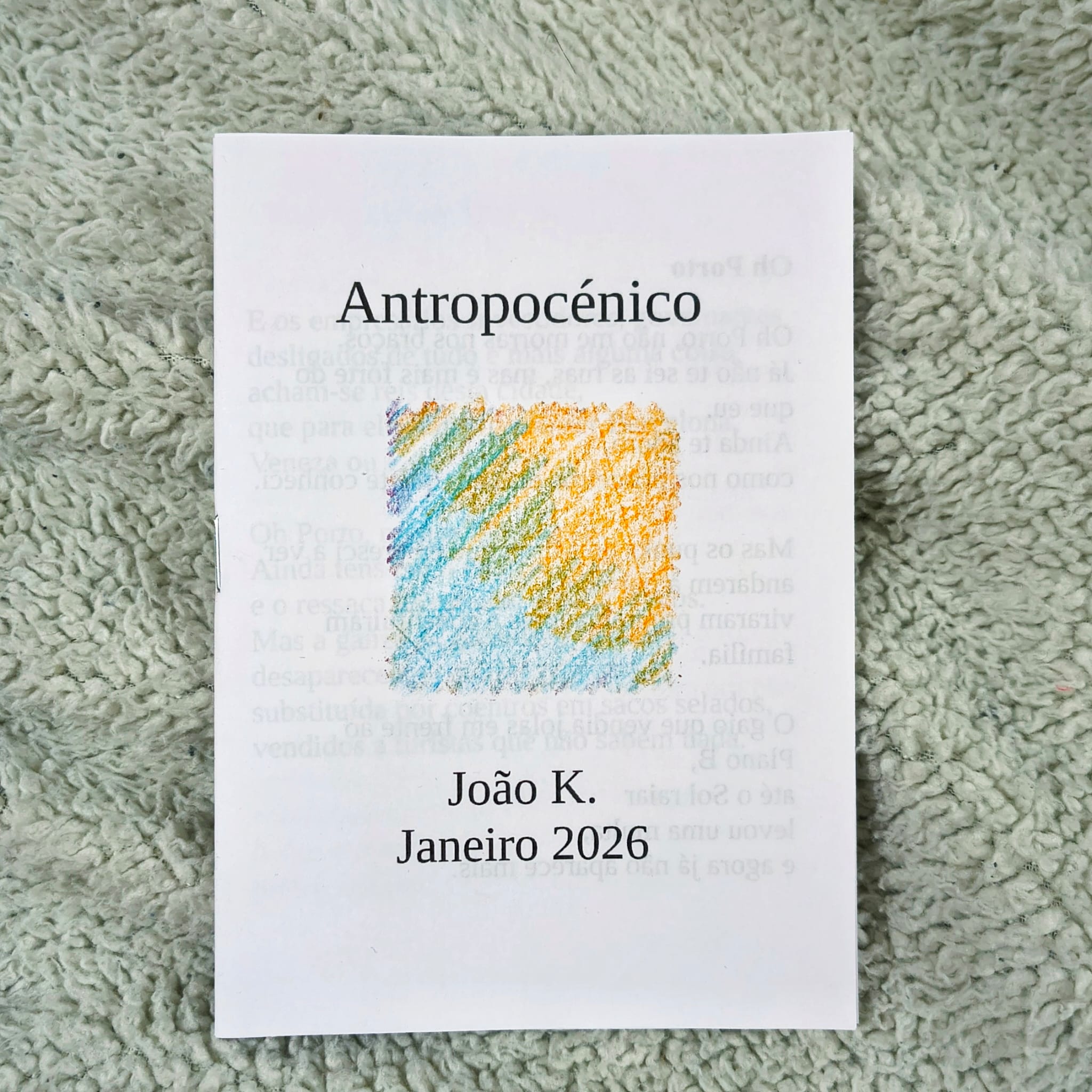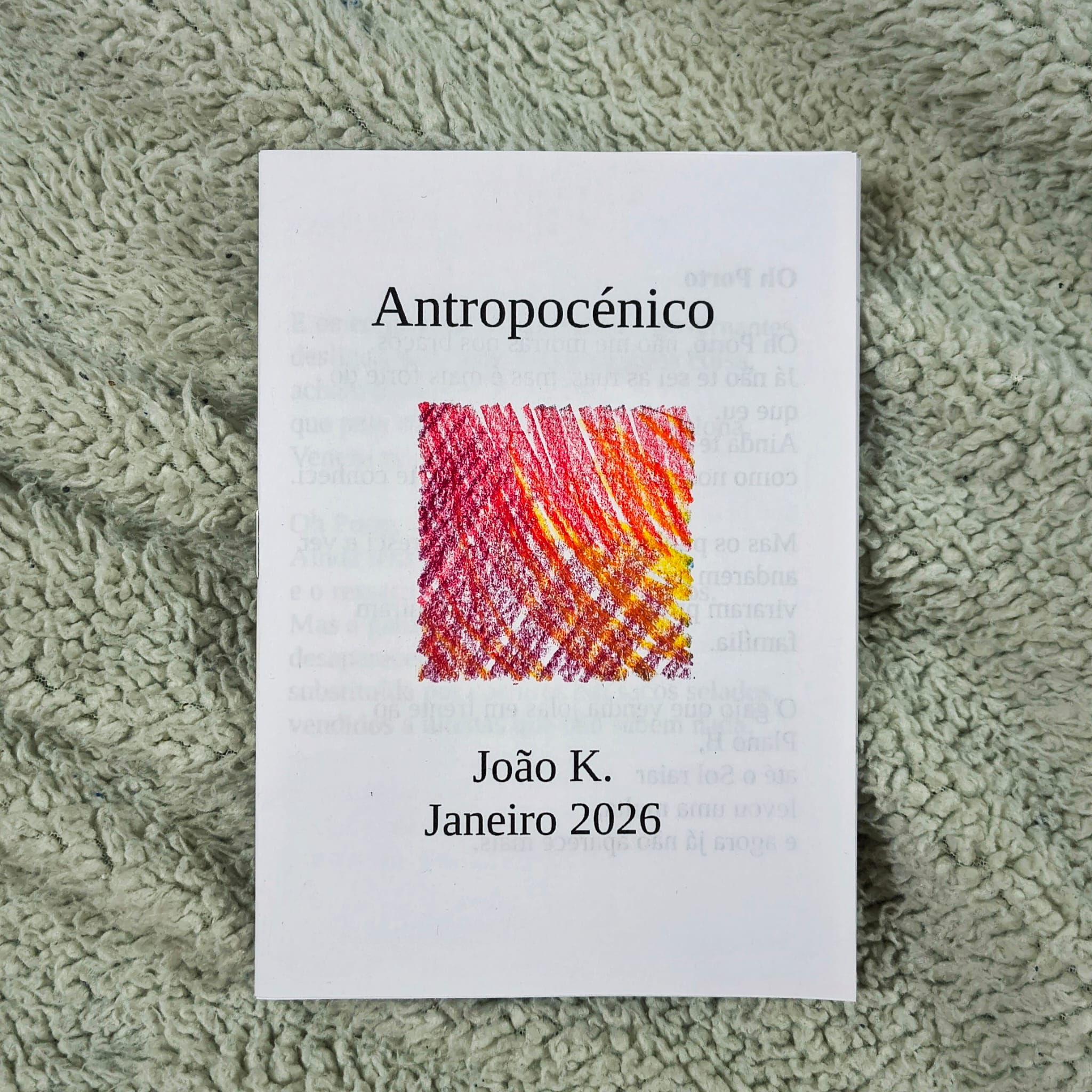 "Antropocénico" é o 2º volume propriamente do projeto zine-a-month de João K. São alguns poemas escritos entre final de '25 e início de '26, a dizer o humano e o seu lugar no mundo.